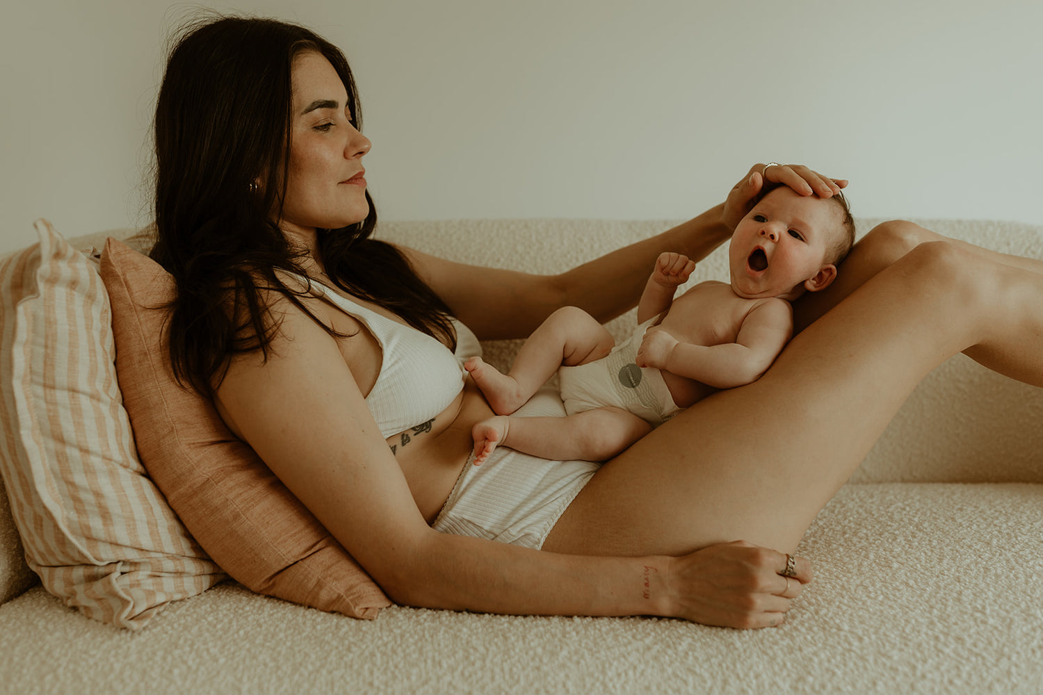 Nappy Pants should pull up in place and fit snuggly, but not so tight as to leave a mark on the skin. We recommend going up (or down) a size to ensure the fit is in line with these guidelines.
